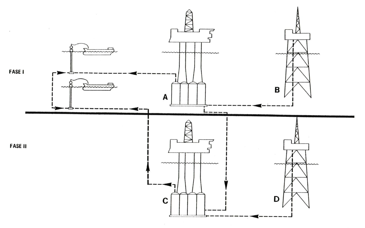 This alternative proposed a two-phase development: each phase would include the construction of one drilling and processing platform and one drilling platform. The processing platforms would be built in concrete, while the drilling platforms would be steel structures.
