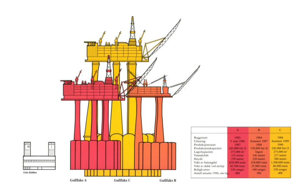 illustration of the size differences between the Gullfaks platforms).