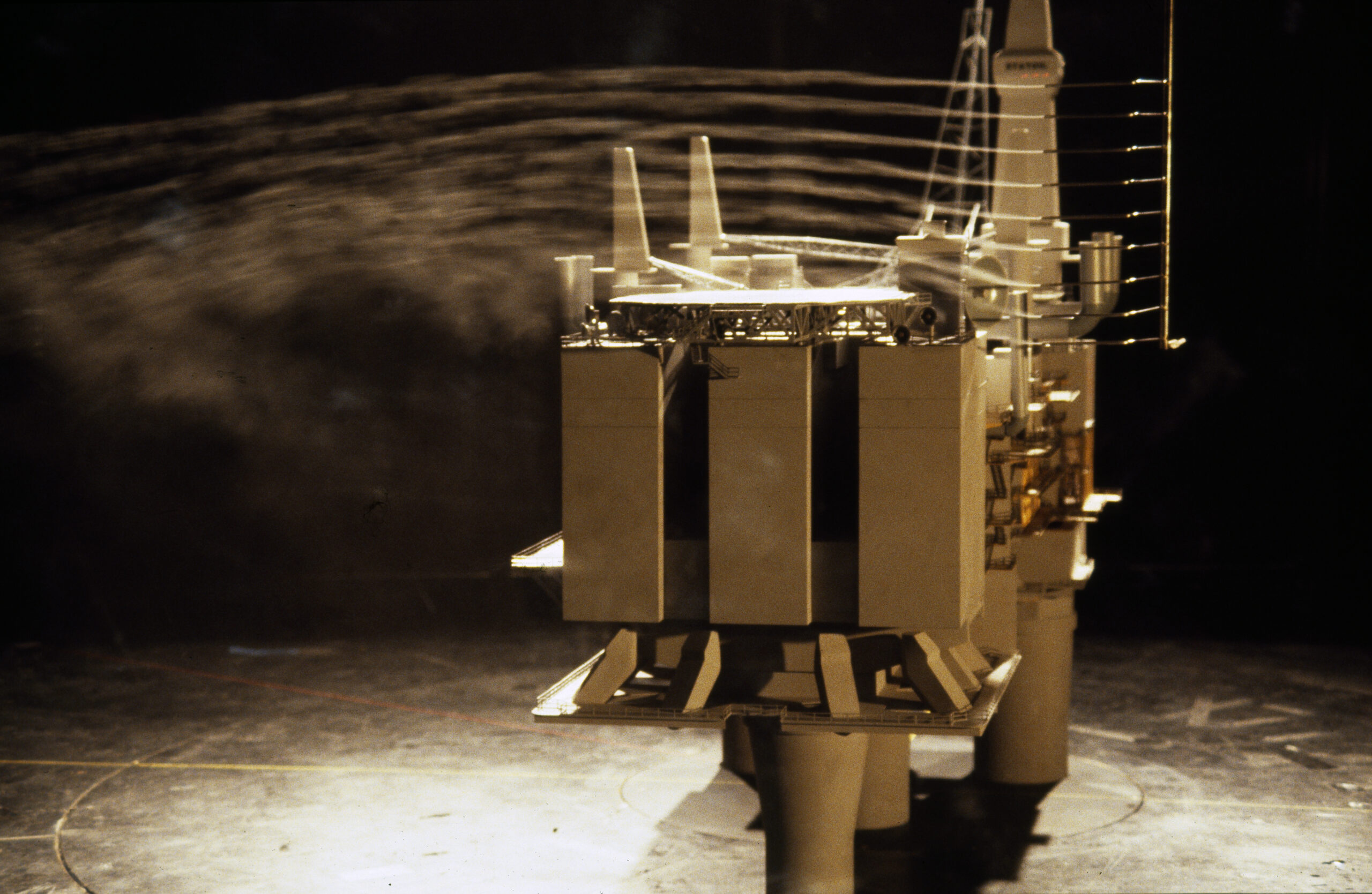 Vic Quincey was responsible for the wind-tunnel tests. He noted they were especially looking at two things: how the wind affected the platform, and how the platform affected the wind. The results would influence how Gullfaks A ultimately looked. The goal was a platform that was safe and pleasant to work on.[REMOVE]Fotnote: Hansen, “Kunstig storm,” 4–8.