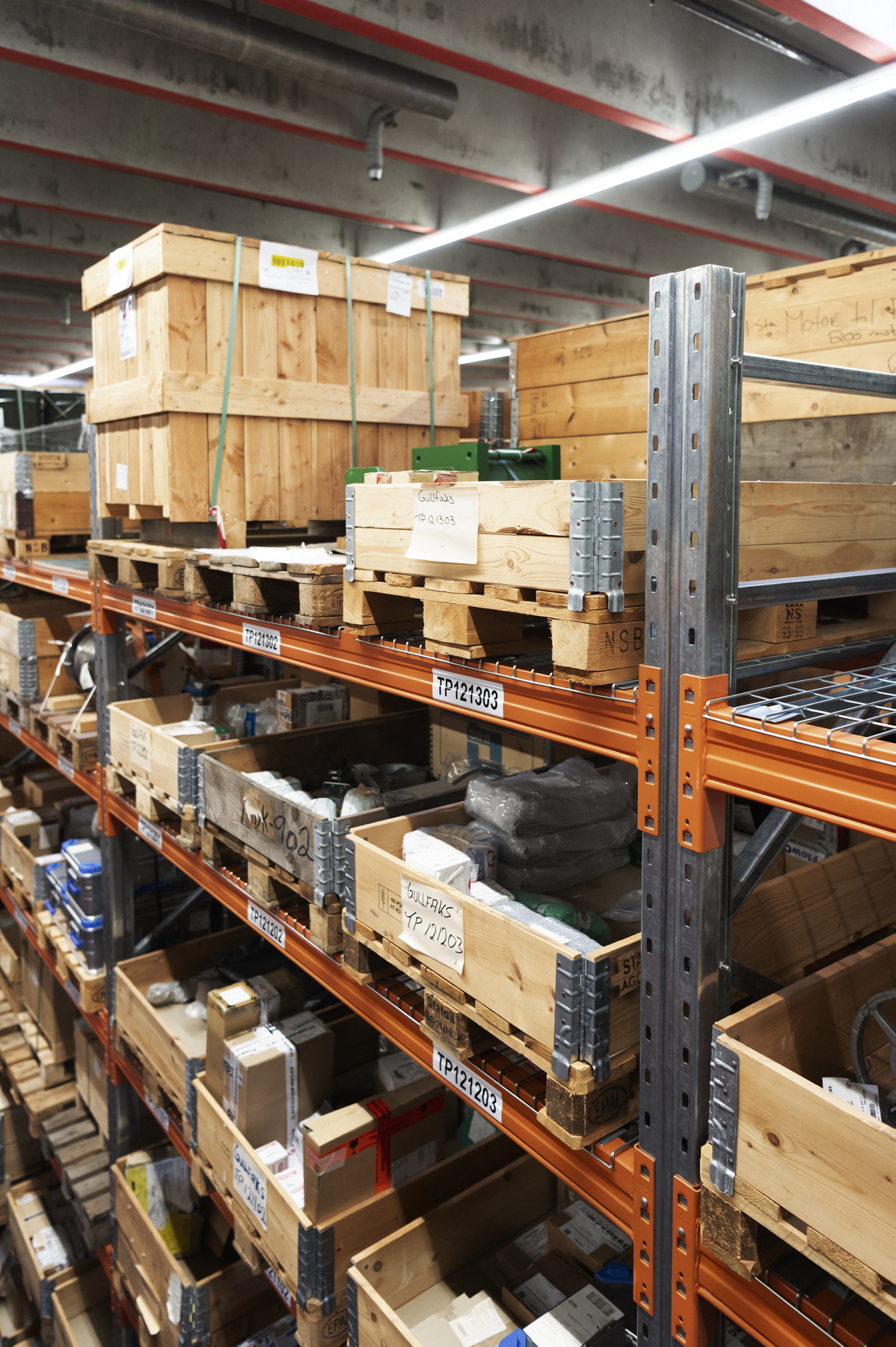 På pallane står både gjenstandar som regelmessig blir sendt ut til felta, og gjenstandar som støvar ned, men som ein dag kan trengast på kort varsel.