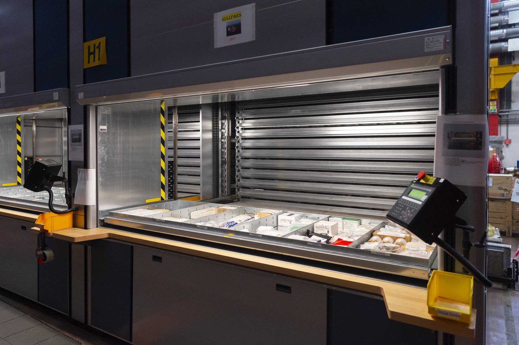 Varer som derimot er hyllevarer, slik som arbeidshanskar og dopapir, blir ikkje lagra på basen. Det kjem inn med éin av dei 50 lastebilane som kvar dag kjem med varer til basen.